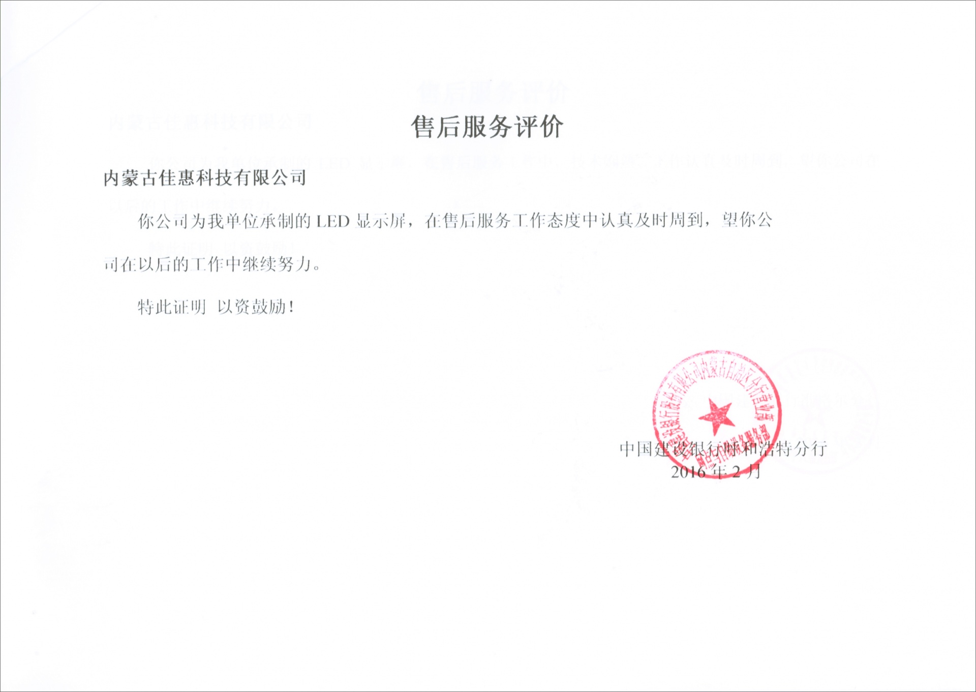 上一條中國建設(shè)銀行內(nèi)蒙古分行包頭優(yōu)質(zhì)服務(wù)證書