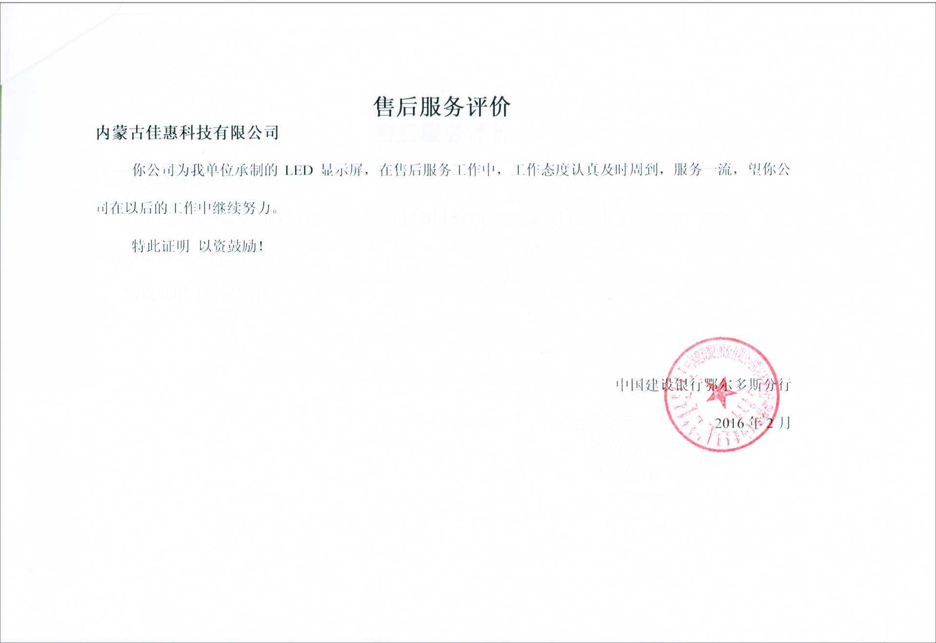 下一條中國建設(shè)銀行內(nèi)蒙古分行準(zhǔn)格爾優(yōu)質(zhì)服務(wù)證書