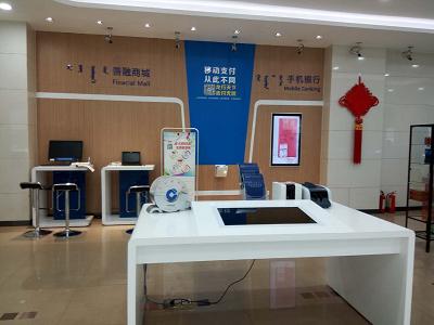 造型獨特的觸摸一體機供客戶進行自助信息查詢,提供整個網點的功能分區(qū)