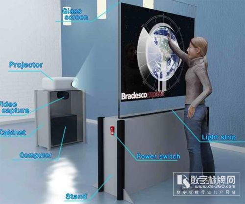 2、站在玻璃墻外,可以觸摸玻璃墻上的圖像,查詢商品信息,了解企業(yè)品牌、企業(yè)文化,它是一個(gè)室外的大尺寸觸摸屏;